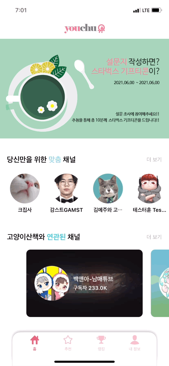 유추(YouChu) - 유튜브 추천 서비스 애플리케이션